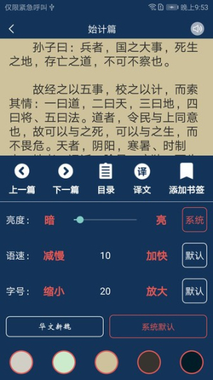2、选择经史子集任一分类进入阅读界面,可调整字体大小与背景色调保护视力。