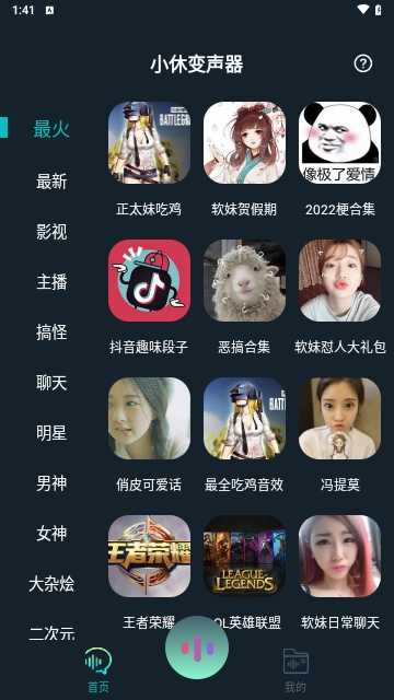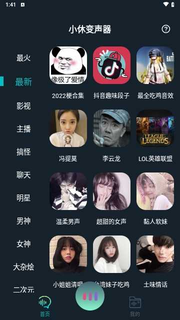 小休变声器是一款超棒的变声软件。完美的进行变声,丰富大量的语音包作品选择!多种类型的声音轻松模仿。录制和更改自己的声音,还可以发布自己的音频,支持使用在各种游戏社交软件!你还在等什么?快来下载吧!