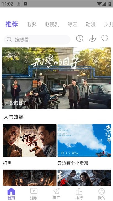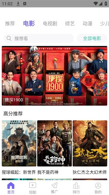 1、启动应用后,在首页可浏览推荐、新剧等分类标签呈现的各类影视内容。