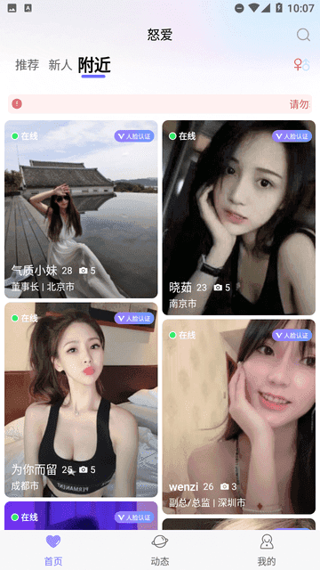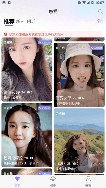 基于真实的用户资料和严格的审核机制,怒爱聊天交友致力于构建一个纯净的交友环境,杜绝虚假信息和骗局的发生。