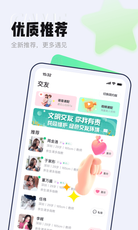 约会邀约:即使你不善表达,平台内高颜值主播也会主动弹出视频或语音邀请,大胆接受约会吧!