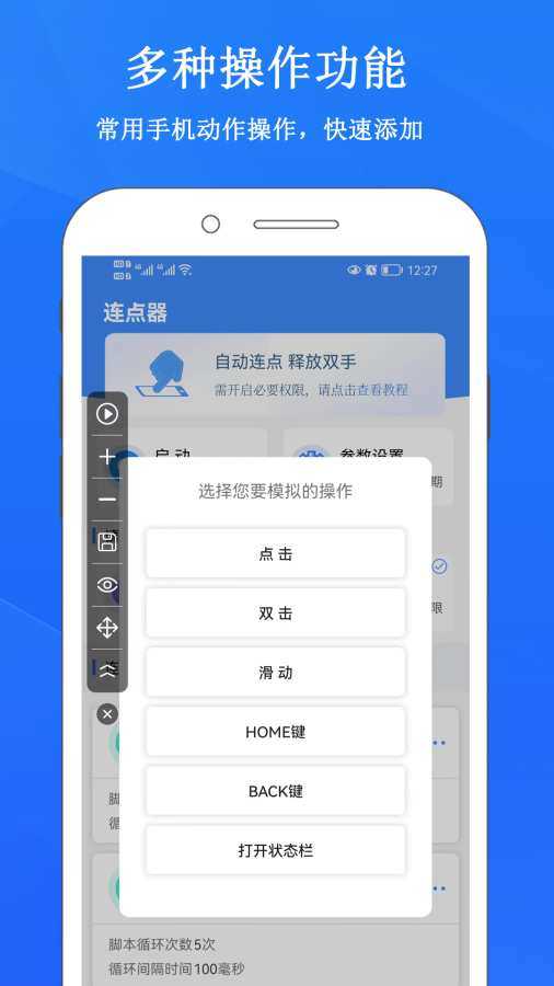 1、专业的安卓录屏软件,其中最大的特色之一就是支持自动连点技能。