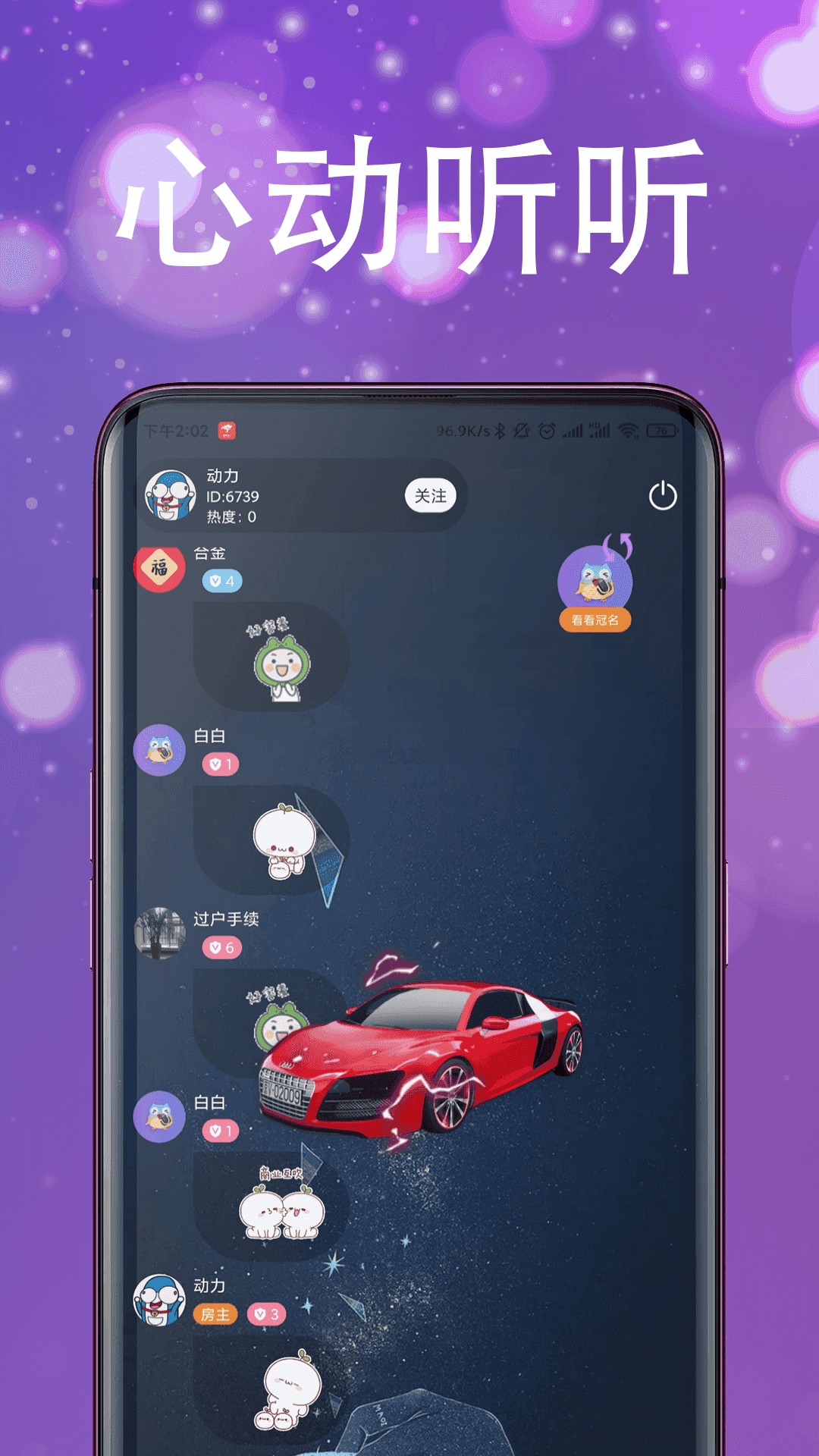 伴声交友App,一个专注于声音互动的社交平台;这里不仅有热闹非凡的派对活动,还有心动的声音聊天室等你来探索。在这里,只需轻轻滑动屏幕,就能邂逅那个让你心动的声音,开启一段奇妙的缘分之旅。
