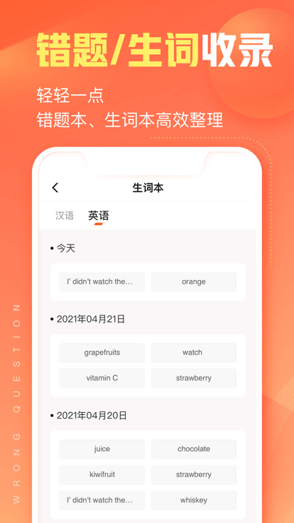 错题、生词随时保存,考前复习事半功倍