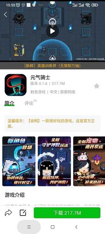 3、游戏详情:提供简介、截图、视频、攻略,更有资讯和礼包。
