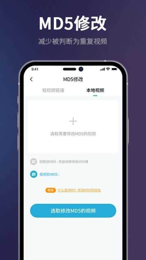 MD5修改功能支持通过各大短视频平台分享链接粘贴和本地上传,2265一键修改MD5码,增加原创度。