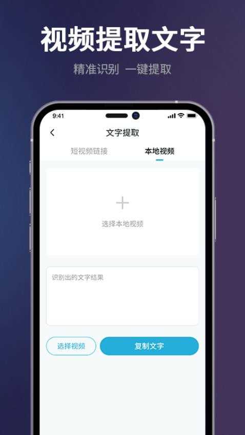 视频提取文字功能支持通过各大短视频平台分享链接粘贴,也可以通过手机本地上传视频。APP可以对用户提供的视频进行转文字提取处理。