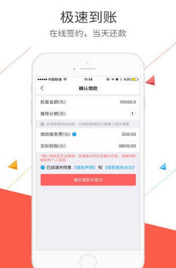 闪电贷:2分钟内快速到账。