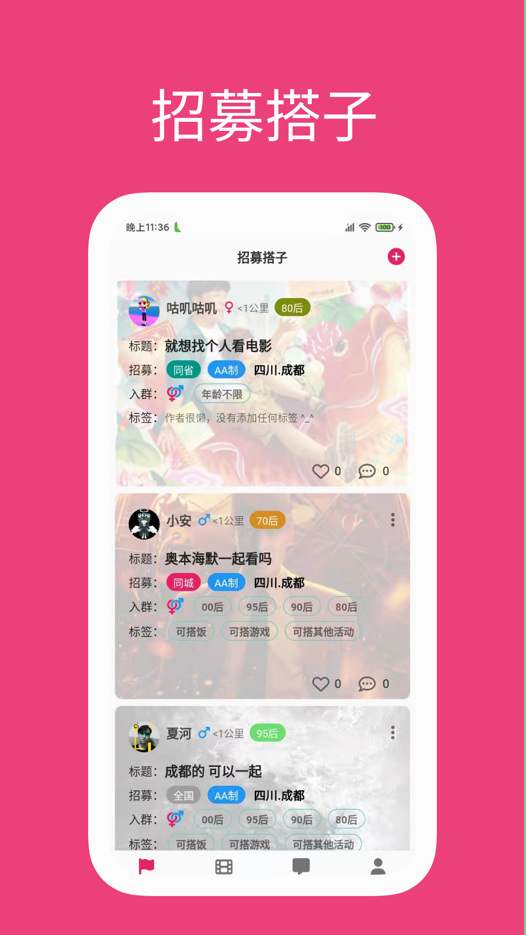 4、爱心绣球:精准定位认识身边的人,随机抛给有缘人,高效交友;