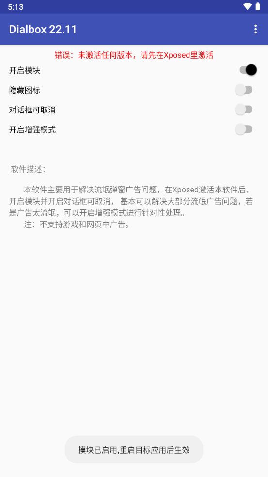 3、对话框取消模块是个纯净”的插件,无需ROOT权限。