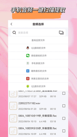 4、[音频提取]视频提取音频:更快的从Tik Tok和Aauto的各种短视频中提取自己喜欢的音频,并对音频进行编辑和剪切。