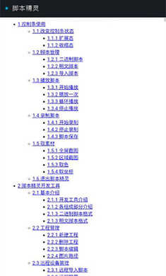 2、二进制脚本是经过脚本精灵开发工具加密和压缩的脚本。脚本是经过精灵开发工具和压缩脚本。脚本管理提供设置当前脚本、制除脚本、导入脚本、切换脚本等功能。