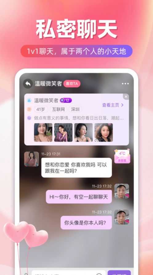 附近有她app提供了多样化的互动模式,融合了智能搜索和前沿社交功能,是当下高效沟通的理想选择。平台不仅汇集了时下流行的聊天方式,还不断更新趣味玩法,让用户轻松实现线上互动,随时随地开启一段精彩对话,堪称现代人脱单交友的好帮手。