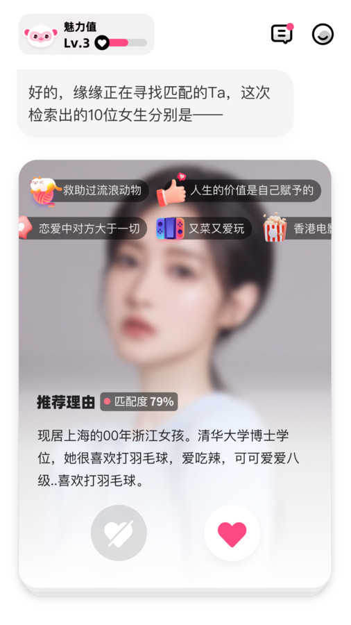 2、每个人对于理想对象都有不同的期待,系统会根据你的具体要求进行精确匹配;