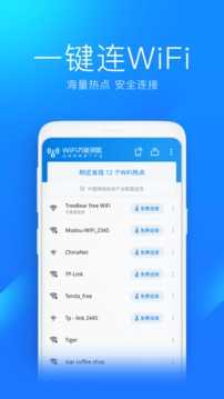 A:WiFi万能钥匙是一款android手机必备的搜索连接管理Wi-Fi热点的工具。内置逾万条的Wi-Fi热点数据;用户可分享使用已知的Wi-Fi热点信息;智能关闭Wi-Fi热点功能非常省电;支持网页认证一键连接,方便省心。