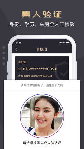 2、实名认证:实名身份认证,保证真人真照片真背景资料,严肃婚恋交友找真爱。