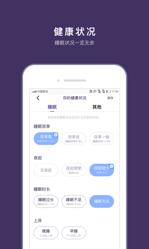 2.它能将所有睡眠相关的数据进行跟踪记录并分析,自动生成睡眠报告,定期给出睡眠建议,从而为您提升睡眠质量。