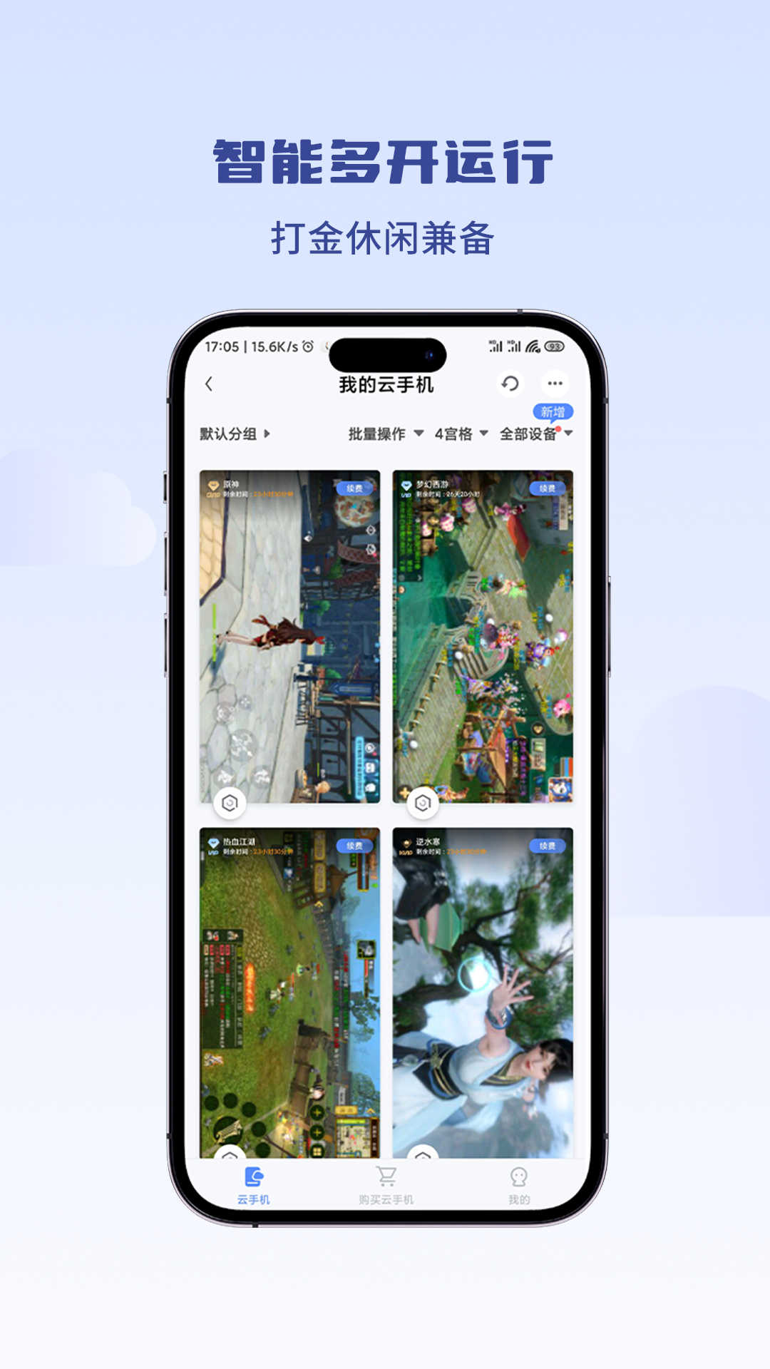 APP场景:云手机随买随用,性价比高。操作上实现了批量群控,提高了生产效率。