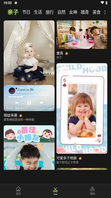 * 一键剪同款:我们有丰富的模板,涵盖了亲子、生活、旅行、宠物、复古、情侣等各类场景。你只需要选择喜欢的模板,然后按照提示进行操作,即可轻松制作出具有专业水准的视频。
