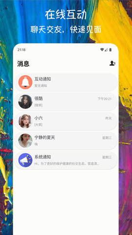 1、用户可以随时通过附近遇缘进行线上交流,并自由加入不同的兴趣社群。这种形式不仅丰富了交友过程,还有效拉近了彼此的距离。