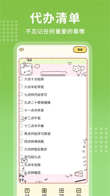 1、把待办事项清单记录下来,设定好时间,会提醒大家,不用担心忘记。