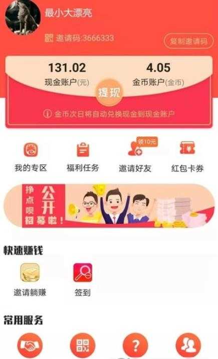 3、邀请攒钱:邀请好友成功即可赚取5元
