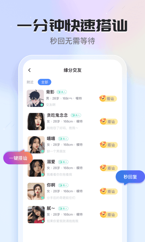 知聊是一款人气火爆的手机社交游戏,深受大家欢迎。在知聊app中大家可以在无聊的时候在软件内找人倾诉聊天,打发寂寞,还能交到朋友,让同城人遇见交友不再是难题!24小时在线甜言蜜聊快速坠到爱河,感兴趣的朋友快来下载体验吧。