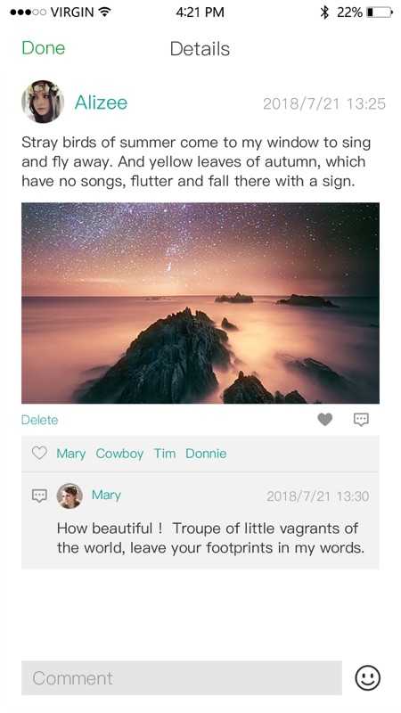 畅所欲言语音通话让您与身在国外的家人和朋友免费通话,而免费的视频通话更可以在您无法以文字和声音完全表达意思时让您面对面的与对方聊天。 MChat 语音和视频通话使用的是手机的网络连接,而不是运营商计划通话分钟,这样您就不用担心昂贵的电话费用了。