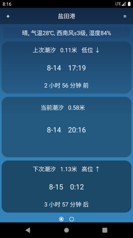 1、实时为你提示最新潮汐到来时刻以及当天天气,让你不错过涨潮时间。