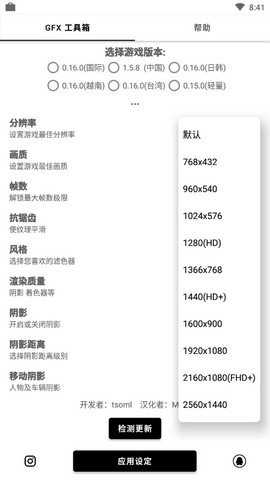 1、GFX工具箱能够对手机上的多种多样的画面质量参数进行设定调节改变;
