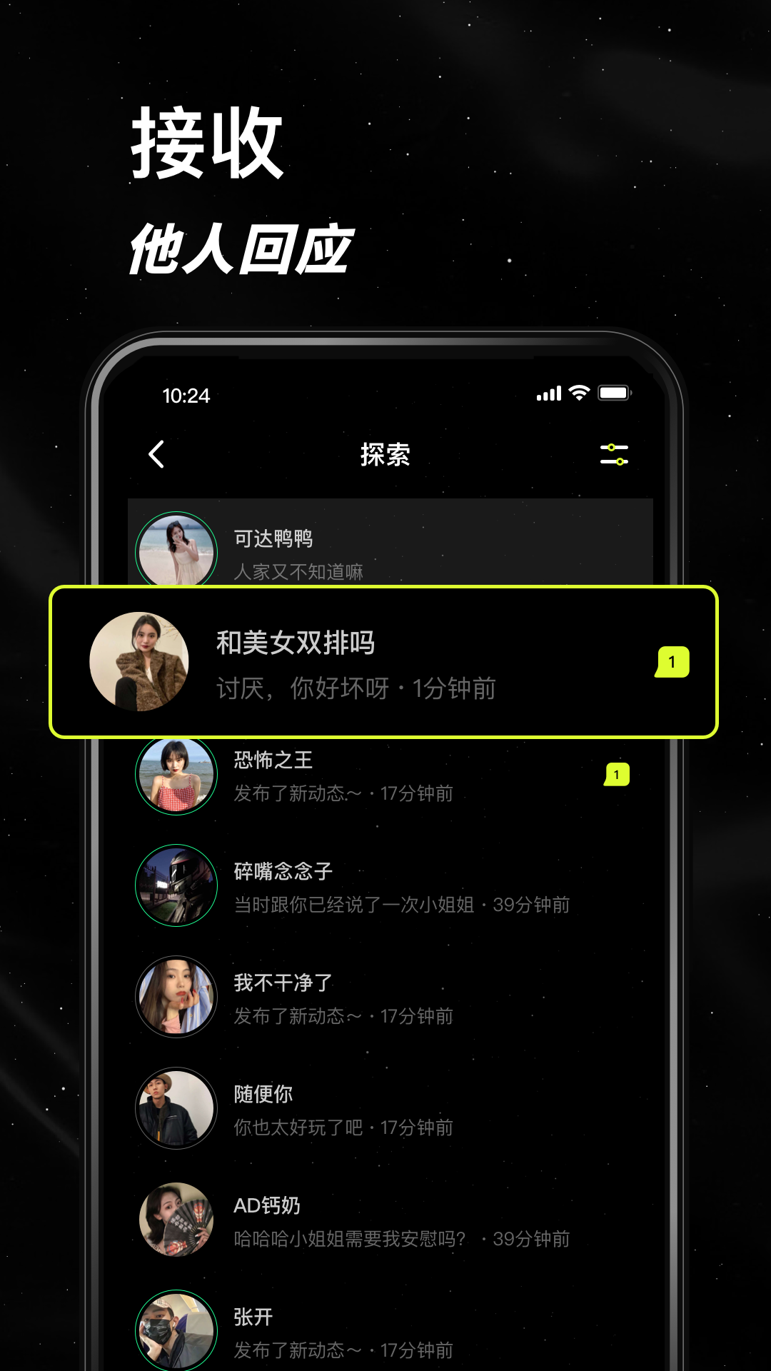 与他人互动建立专属社交圈,在线上分享生活点滴,吸引志同道合的朋友前来关注。