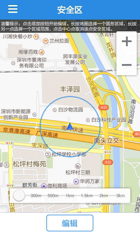 家长可根据小孩活动范围,自由设定安全区域。一旦超出安全范围,系统会自动向家长的手机发出报警,以提示家长孩子已经超出安全区域可能正面临危险。