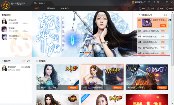 6、丰富的游戏礼包提示,每次打开4366游戏大厅都可以领取礼包