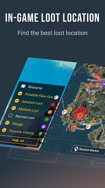 3、游戏内战利品位置,在游戏中,增强地图体验。在游戏中的地图上单击以查看最佳秘密”高级战利品位置。