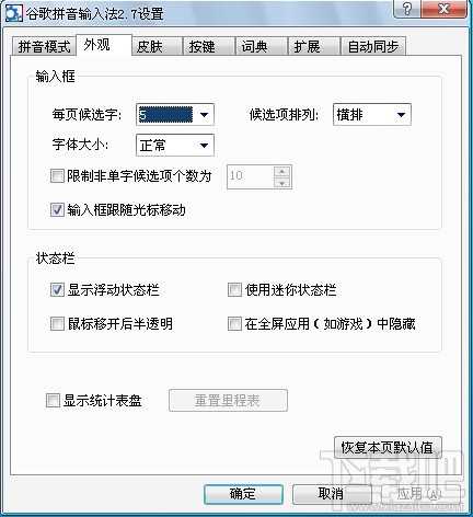 另外笔者注意到,该谷歌拼音还支持对界面风格进行进一步定制,点击提示栏单机鼠标右键就可以进行设置,比如提示栏一次最多可以显示的文字个数、输入框是否进行光标跟随和鼠标移开后是否半透明状态栏等等(这里就不截图了)。