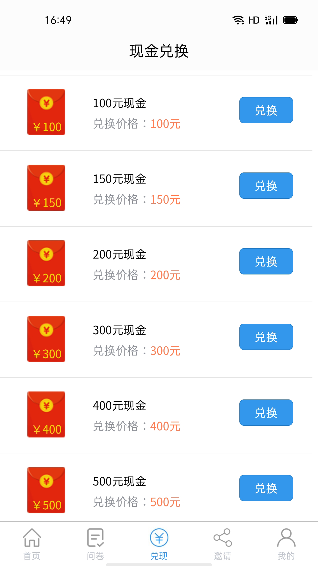 ● 完成一个调查,可获得2-100元现金
