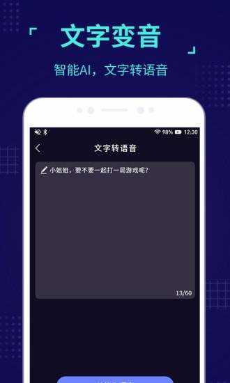 2.多种变声效果可选:爷爷、大叔、萝莉、小孩、幽灵、机器人...... 变声时只需轻轻一点,让你成为自带BGM的潮人