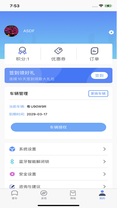 1、进入个人中心页面,在车辆管理区域点击更换车辆功能入口。