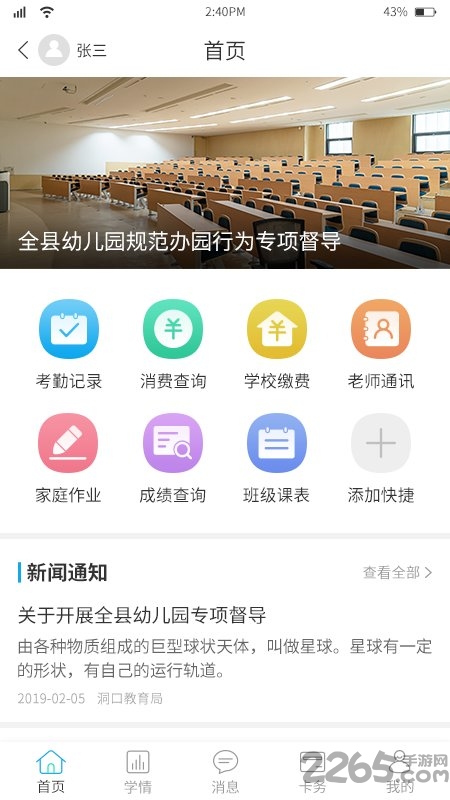 新闻通知与学生学情板块可加强家长同老师、学校的联系,了解学生所在班级、学校的最新动态。