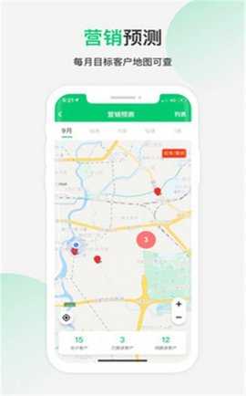 3、在地图上直观显示客户位置,结合营销获客排名与作业状态展示,工作成效一目了然。