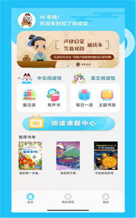 1、以知了”猫为IP形象,为学龄前至中学少年儿童提供中英文阅读服务的APP;