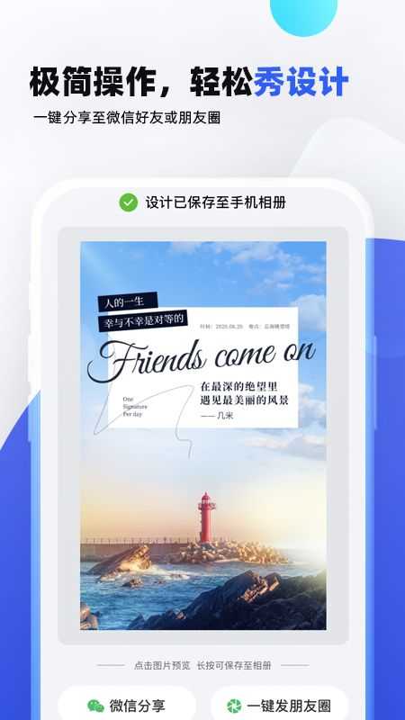 1、一键分享,所有制作出来的内容都能一键进行分享,让你的客户或者是朋友们能看到你分享出去的设计作品。