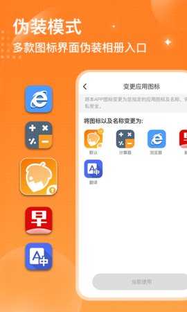图标伪装-桌面图标隐藏,计算器,浏览器,新闻等数十个不同的图标,伪装界面,能够完美隐藏你的隐私相册。