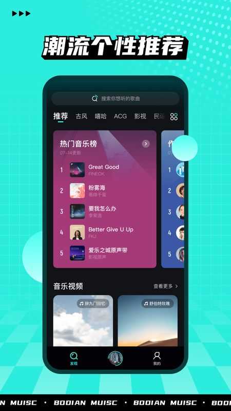 4、拥有潮流潮流个性化的音乐推荐,热门音乐自由的搜索,带来更多方便。