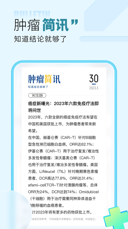 咚咚肿瘤科app官方版是健康医疗软件,专为肿瘤病人打造的健康管理平台,为病人提供最专业的医疗就诊服务,为患者的健康保驾护航;有需要的朋友快来下载体验吧!