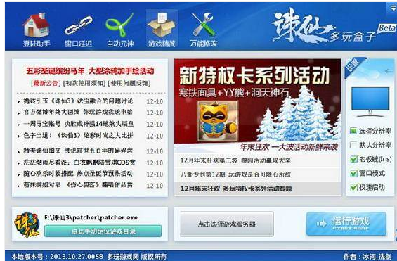 多玩诛仙盒子是一个诛仙实用小工具的一个合集。现已经全新改版,全新的自动元神脚本,可后台运行,让你挂机,QQ聊天两不误,又名诛仙3盒子。软件功能齐全:生产技能、一键替换模型称号、自动答题等应有尽有,不管你是诛仙高手还是小白级玩家,通过多玩诛仙盒子都能轻松打怪升级成为高手中的高手。