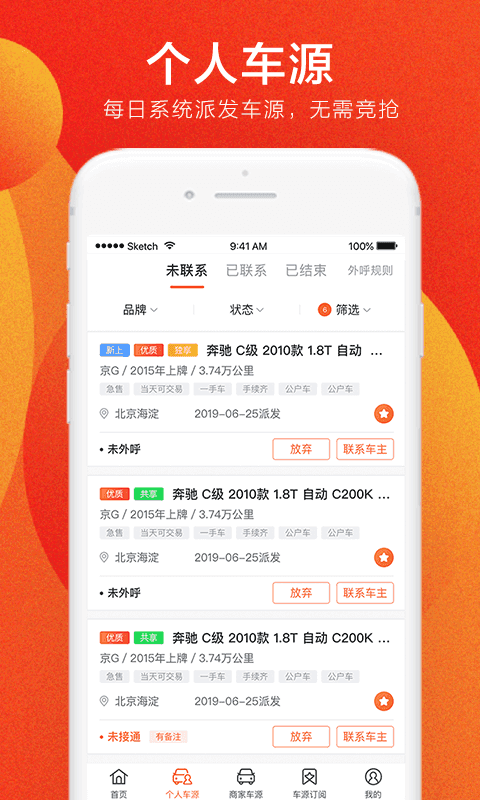 1、精挑细选海量汽车车源,承诺100%真实,100%在售,100%无佣金。