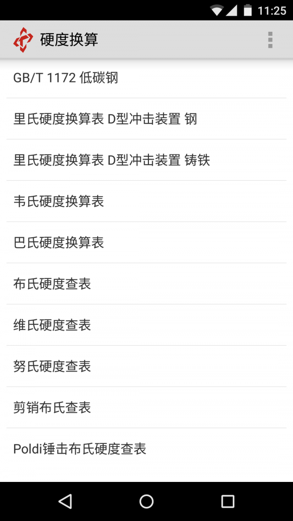 硬度换算”的换算数据来自最新有效版本的中国国家标准、国际标准、美国标准:GB/T 1172-1999、ISO 18265:2013、ASTM E140-2012be1,包括专门适用于各种材料的硬度换算表:非奥氏体钢、调质钢、工具钢、不锈钢、铸铁、硬质合金、镍合金、黄铜、青铜、紫铜、铝及铝合金等。
