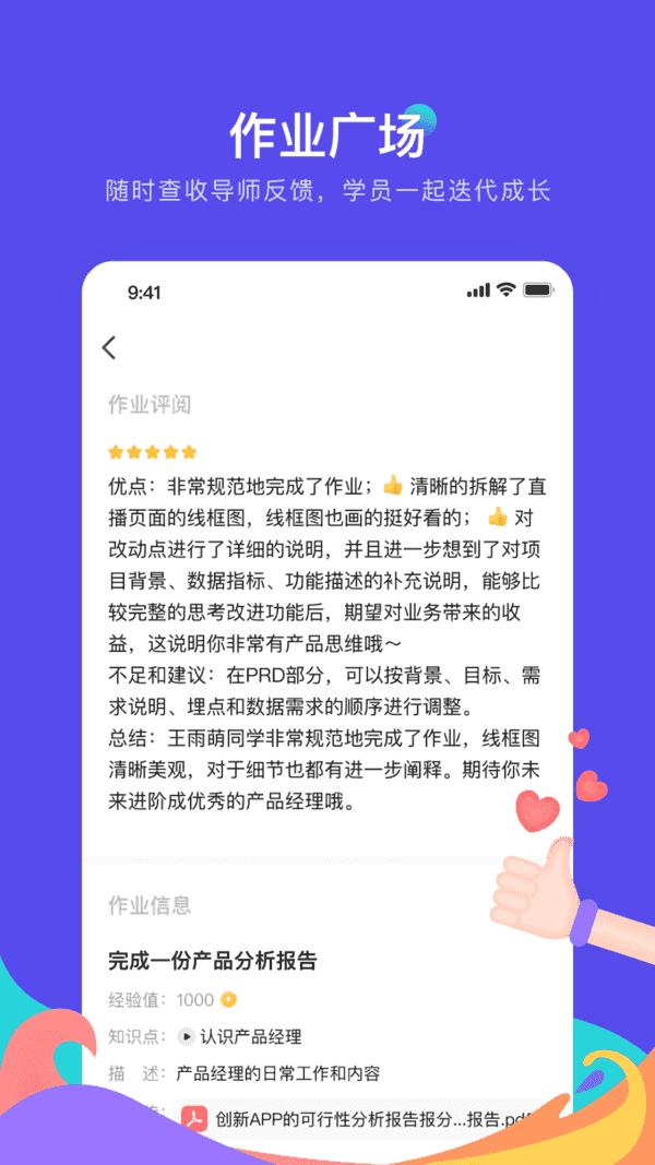 2、我们更注重你的成长和能力输出。每一次提交作业,都会得到专业导师的详细点评,帮助你在实践中巩固所学知识,并找到优化的方向。