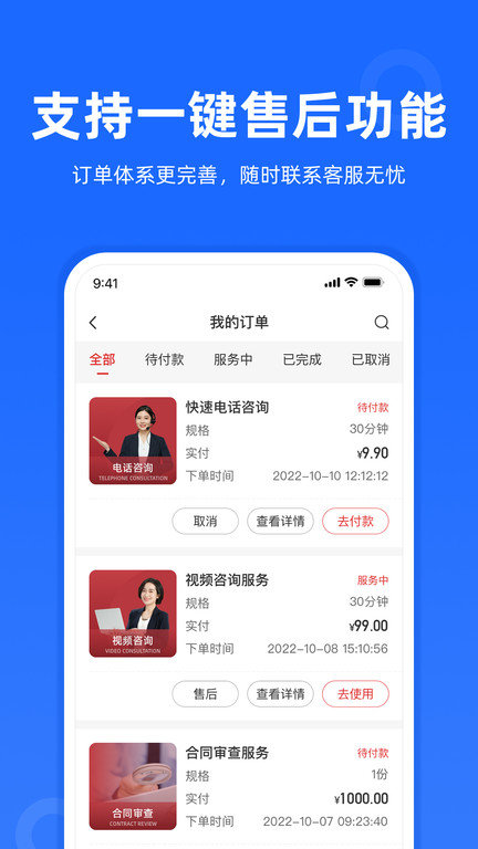 平台提供各类法律咨询服务:免费无限次智能咨询、付费在线律师1对1电话或视频咨询。可随时随地解决您的任何法律问题,满足各类人群需求。